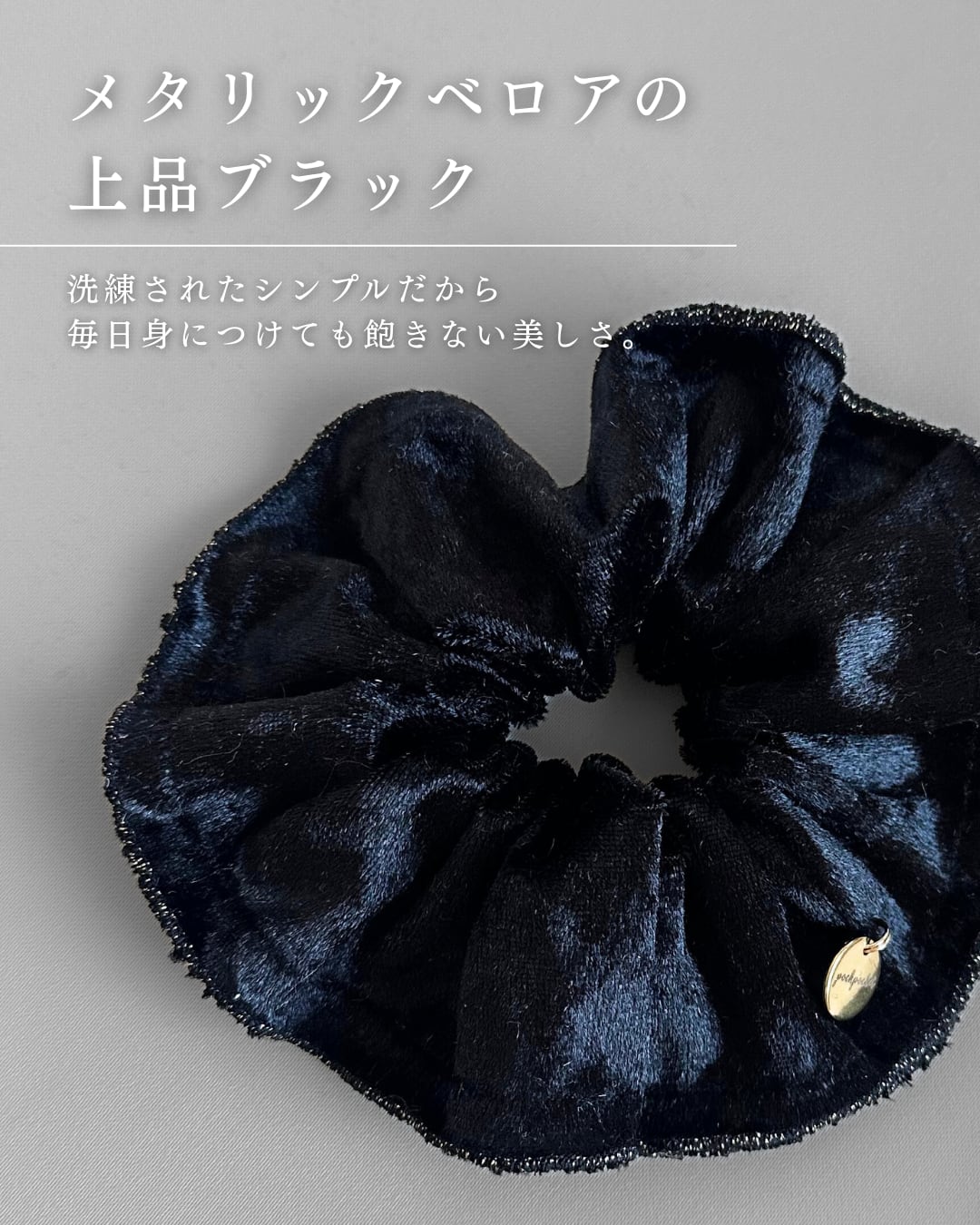 メタリックベロア生地を贅沢に使ったボリュームのあるシュシュ。