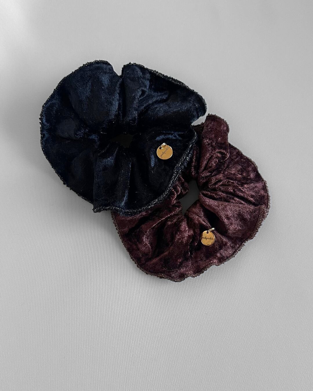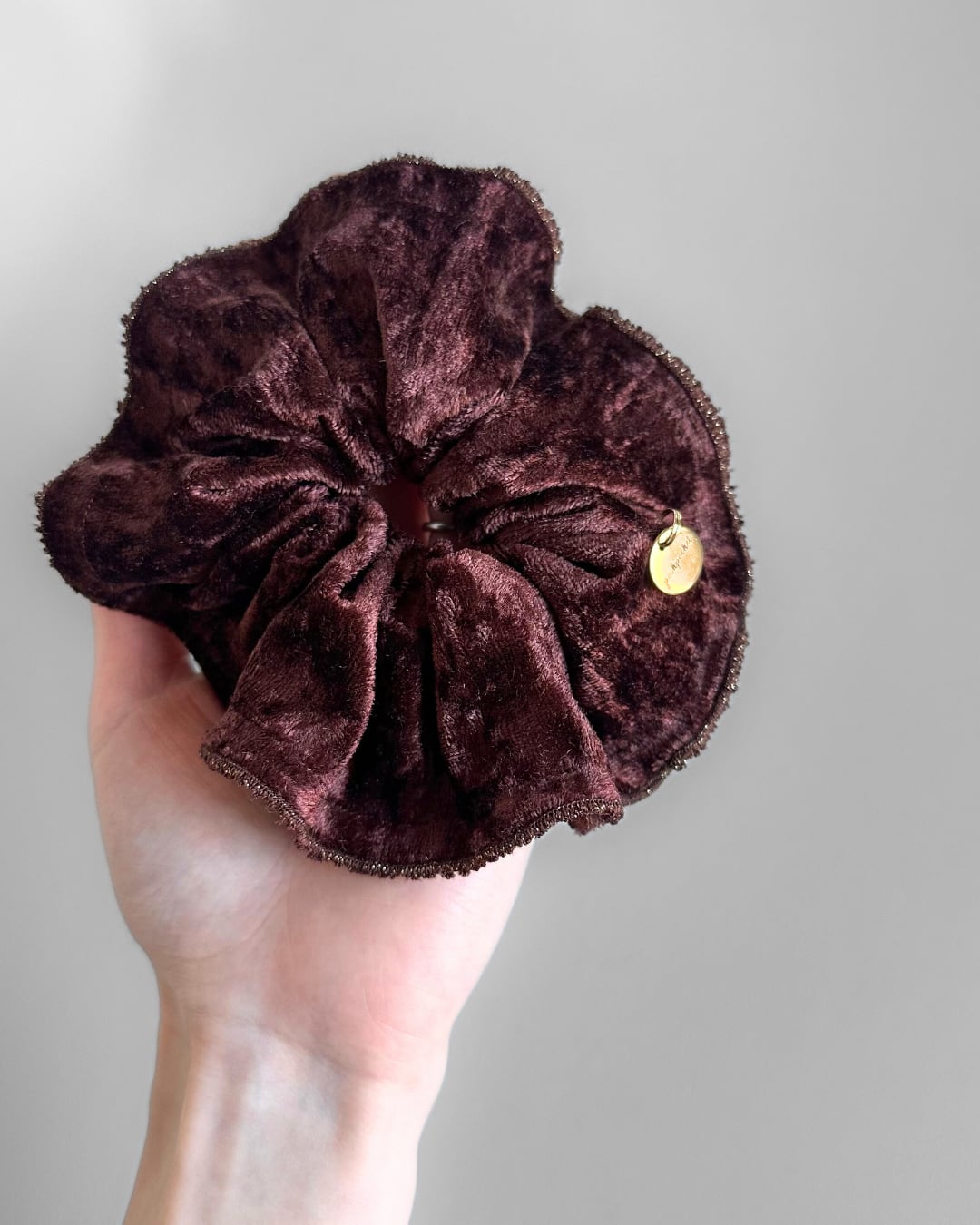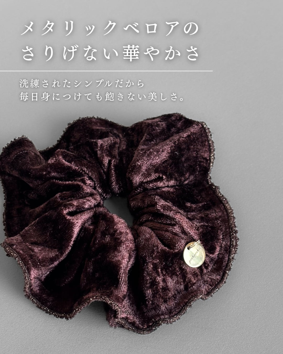 メタリックベロア生地を贅沢に使ったボリュームのあるシュシュ。