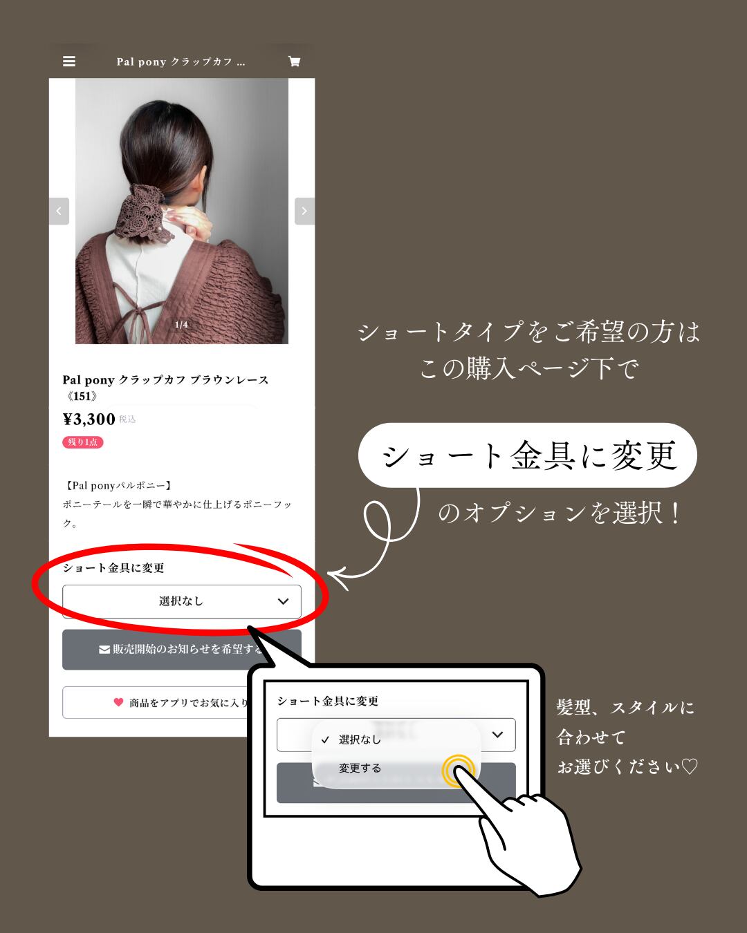 (短めをご希望の方は「ショート金具に変更」を選択してください)