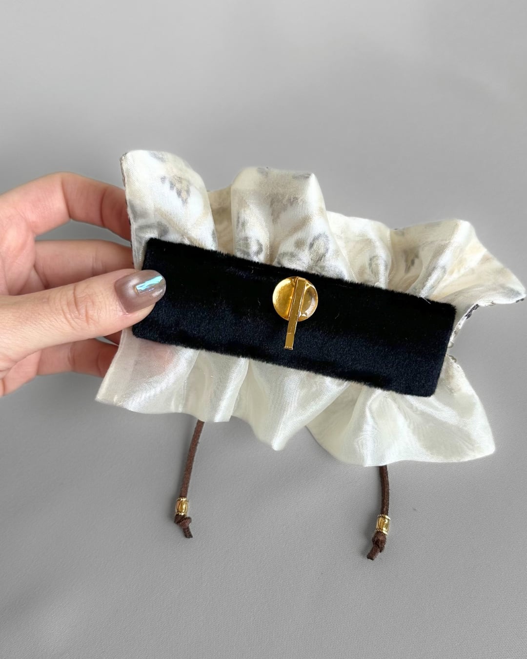 ゴムにフックをかけたら、本体をパチンっ!と折るだけでくるんと巻きつき、ゴムをおしゃれに隠してくれます。