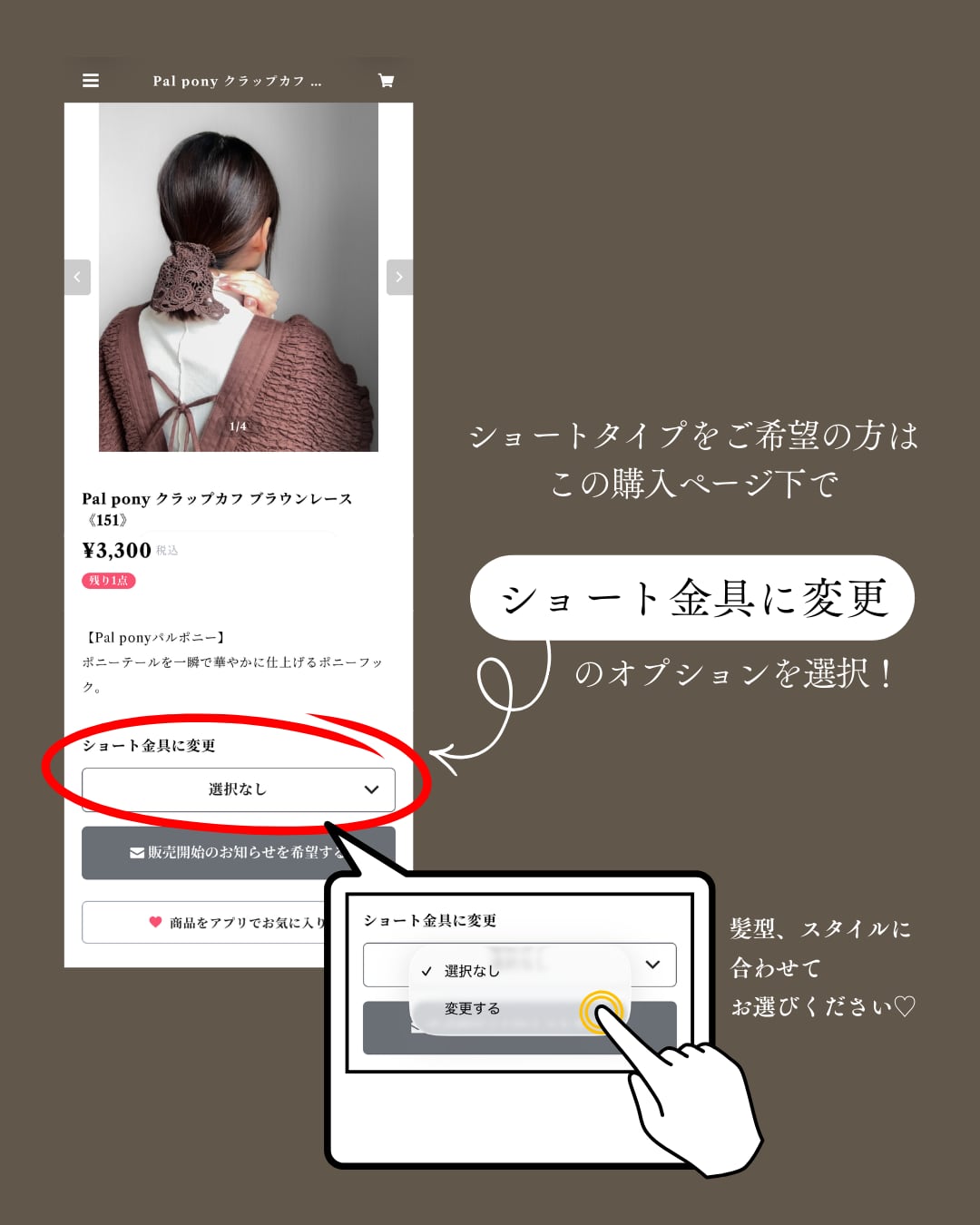 (短めをご希望の方は「ショート金具に変更」を選択してください)